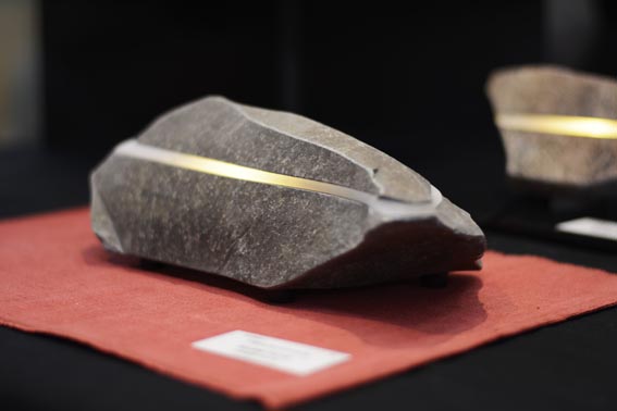 自然石をカットすると、歯の厚み分が粉になり無くなります。