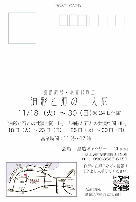 國島康敬・小佐野哲二 「油彩と石の二人展」 「石と油彩との共演空間 - I -」 ![]() ![]() |